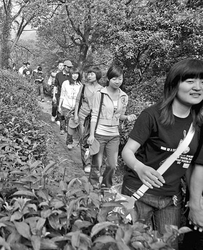 “我不累。”山顶上,余丹有点自豪了。因为年纪小,余丹对周围的一切都充满了好奇。看到山间的采茶人,她觉得好奇;看到别人专业的登山杖,她更是好奇。一路上,周围的人和她的阿姨尽忙着解释余丹的这些好奇了。