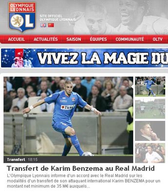 中新网7月2日电 北京时间今日凌晨,里昂官网宣布:球队当家前锋本泽马将加盟西甲豪门皇马,转会费为3500万欧元。这是继卡卡、C罗和阿尔比奥尔之后,弗洛伦蒂诺今夏为皇马引进的第4名强援。