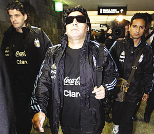 谁是目前阿根廷最走红的“球星”?不是梅西也不是阿奎罗,而是一群从阿根廷飞到南非的足球流氓。近几日,阿根廷《奥莱报》、《民族报》、《号角报》等媒体都在报道阿根廷一些最暴力的足球流氓杀到南非的事情。事实上,媒体之所以总是关注此事,还不仅仅是足球流氓到南非这事,而是这群足球流氓与阿根廷足协、足协主席格隆多纳以及国家队主帅马拉多纳的密切关系。