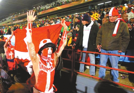 世界杯第一次在非洲、在冬天举行,看台上再狂热的球迷,面对刺骨的寒风,也只能先把自己裹成粽子。不过,没有最狂热只有更狂热,在喀麦隆队与丹麦队的比赛中,两名丹麦球迷上演了本届世界杯的首例“裸奔”。