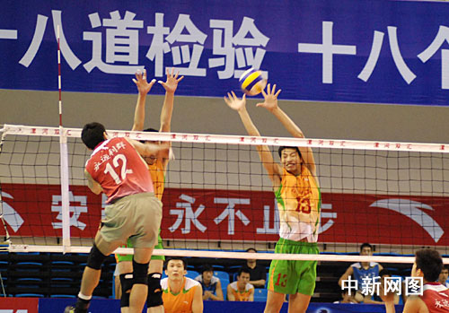 中新网漯河8月29日电(记者 关涛 师红垒 通讯员 林波)8月28日,2009年全国男排锦标赛(双汇赛区)在漯河市体育馆展开了最后一天的八场决赛。引人注目的东道主河南队与江苏队冠亚军争夺战中,5局激烈较量之后,河南队以2:3遗憾败北,再次与冠军失之交臂屈居亚军,江苏男排问鼎冠军,