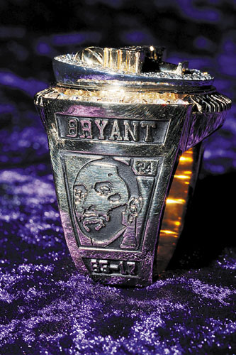 以前的总冠军戒指都要分别刻上不同球员的名字和号码,新版湖人总冠军戒指又作出创新,增加了球员头像。每一枚总冠军戒指又会选出一颗钻石刻上湖人的“L”字母,不同戒指的这些“L”所处钻石的位置又会不同,必须通过高倍显微镜才能看到,因此每人的总冠军戒指都是自己独一无二的身份证明。