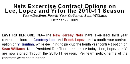 篮网此次执行的是易建联的第四年合同选项,因为阿联与雄鹿签订了2+2的新秀合约,即前两年的固定保障加两年合同选项。所以易建联至少会为网队效力到2010-11赛季结束。