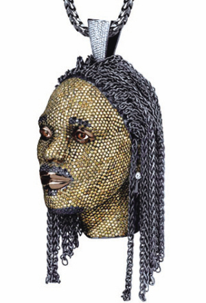 这是一个用纯金和钻石堆砌出来的奢侈品,完全按照丹尼尔斯的真人轮廓打造。美国媒体披露了这个头像的制作过程。制作人员先把丹尼尔斯的素描输入电脑,然后进行比例分析,之后开始制作。先用模板浇铸出纯金的头像,然后把钻石镶嵌上去。