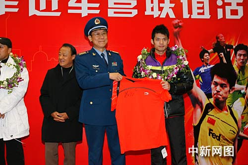 中新网上海十一月十七日电 (宗晨亮)十七日,“李宁·2009中国羽毛球公开赛”在上海源深体育中心拉开帷幕。国家羽毛球队总教练李永波带着没有比赛任务的林丹、王仪涵来到某部队,举行世界羽毛球冠军进军营联谊活动。