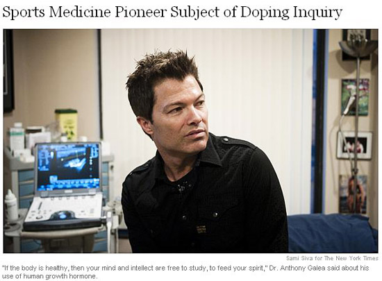《纽约时报》官网称:安东尼-盖利亚医生在9月底过境的时候,海关从他身上发现了禁药人工合成激素和爱维治(乳牛血清制剂)。10月,加拿大警方在多伦多拘捕了他。随后联邦调查局在他的电脑中发现了一些与职业运动员有关的医疗记录。