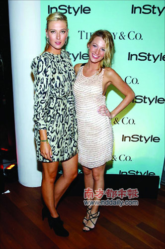 北京时间昨天,莎拉波娃与美国明星布莱克·莱弗利一起出席某时尚品牌在纽约举办的一场鸡尾酒会。