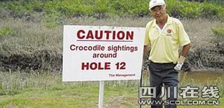 这个倒霉的老人名叫詹姆斯·威塞克,他在这个高尔夫球场第12洞打球时,不幸被草丛里窜出的一只鳄鱼咬伤。虽然当即被送往了医院,但医生最终也未能保住詹姆斯的胳膊,不得不为他实施了截肢手术。