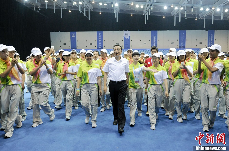 中共中央政治局常委、国务院总理李克强28日在南京出席第二届夏季青年奥林匹克运动会闭幕式之际,代表中共中央、国务院专程看望青奥会志愿者代表,向2万多名中外志愿者表示亲切慰问。