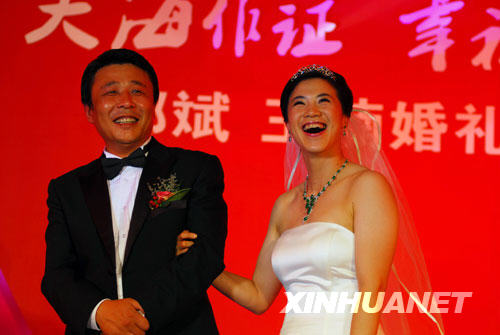 9月27日,王楠与丈夫郭斌在婚礼现场。新华社发(初阳 摄)