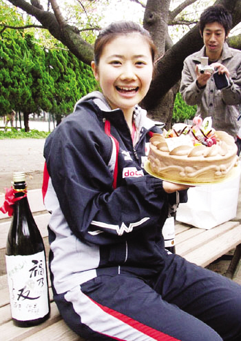 面对众人送上的蛋糕,福原爱高兴地接受了,但对来宾们“整蛊”似地送上的日本清酒,单纯可爱的福原爱并不为所动,“虽然我出生在酿酒世家,但从小就对含有酒精的清酒味道相当抵触。尽管作为一名成年人可以喝酒了,但我却依然会坚持滴酒不沾的原则,包括抽烟也一样,绝对不会去碰。”福原爱的祖辈都是酿酒的行家里手,据说她的父亲福原武彦更是酒量惊人。