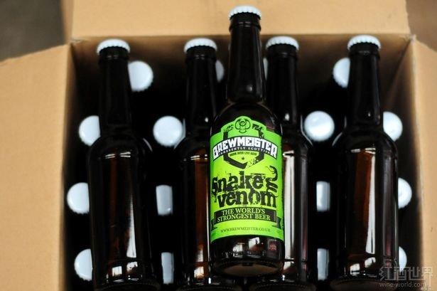 据悉,苏格兰的Brewmeister啤酒厂最新推出了一款名为“Snake Venom”的啤酒。此酒酒精度高达67%,堪称有史以来最强劲的啤酒。它所用的酿酒原料包括烟熏泥煤麦芽、两种酵母、一种啤酒和一种香槟,售价为50英镑/275毫升。