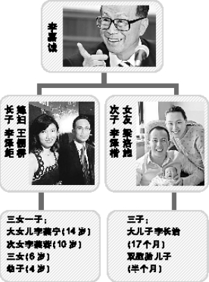 梁洛施为华人首富李嘉诚家族添两虎子,这两个宝宝不仅有望让妈妈顺利跟爸爸李泽楷结连理,而且未来接班能力也已具备。梁洛施这3个儿子,个个身价非凡,根据福布斯今年年3月公布的富豪排行榜,华人首富李嘉诚名列全球第14名,资产是210亿美元(约合1421亿人民币),若由两子均分继承,加上李泽楷个人身家约76亿元人民币,他的儿子可继承792亿元人民币,若由3个儿子均分,每人至少可分约264亿元人民币。