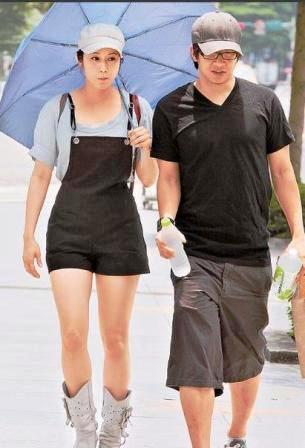 她昨穿黑色连身服,露出白晰玉腿,据悉她与眼镜男原本约吃中饭,后来他贴心陪她去银行办事情,眼镜男穿短裤、球鞋的造型很轻便,两人一发现镜头,她立刻张开洋伞遮掩,他也低头装不熟弹开,两人随后迅速消失在信义威秀商圈。
