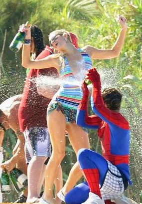 希尔顿湿身露乳调戏猛男 性感喷火不惧走光(图)(3)
