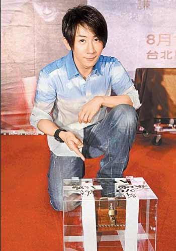 刘谦巡回之旅台湾记者会上大玩预言魔术,把预言内容封入箱中。