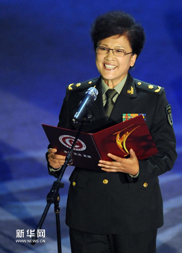 8月23日,演员宋春丽在长春电影节开幕上表演朗诵。