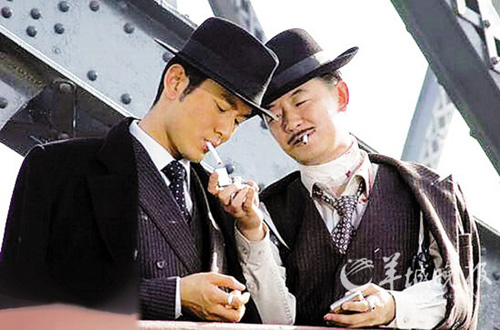 《新上海滩》里的黄晓明(左)继承了发哥版的“烟瘾”