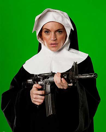 林赛•罗韩持枪扮火辣修女 薄纱大秀丰满上围(图)(4)