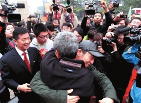张艺谋在现场与同学田壮壮热情拥抱。图片来源:北青网