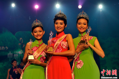 折扇、青花瓷、水墨画、红灯笼,这四个最具中华文化特色的元素被佳丽们演绎出了最具中国风情的味道。