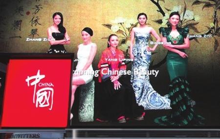 17日起,美国纽约时报广场上,树立起一抹亮丽的“中国红”,6块电子显示屏同时播出中国首部国家形象宣传片,而在荧屏侧面“感受中国”的英文字样格外显眼。露脸宣传片的章子怡、范冰冰、周迅、张梓琳、杨丽萍等五位女星,也被标榜为“中国式美丽代 表 ”(ChineseBeauty)。