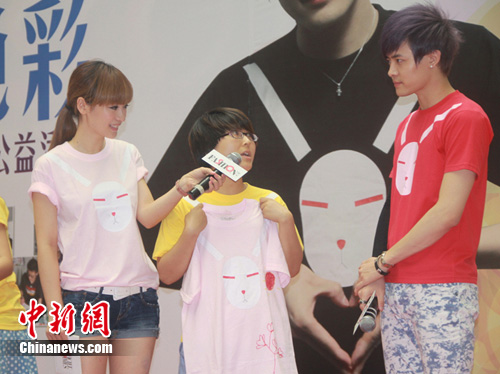 当天柳岩简单清爽的马尾造型出场,身穿由付辛博设计的粉色爱心T恤,简单而不失大方,而她充满青春活力和富有亲和力的笑容也与当天的活动主题十分吻合。活动现场,柳岩和付辛博与粉丝一道亲手DIY爱心T恤,场面温馨热闹。柳岩借机现场呼吁和倡导社会各界人士对残疾儿童给予更多的支持和关爱,言行中不难感受到她内心善良、感性的一面。