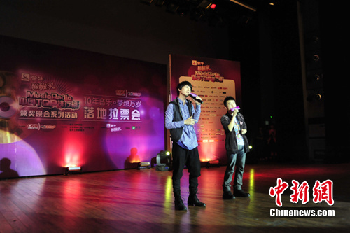 何洁坐轮椅穿"萌鞋"现身 携手严爵献唱拉票会(图)(6)