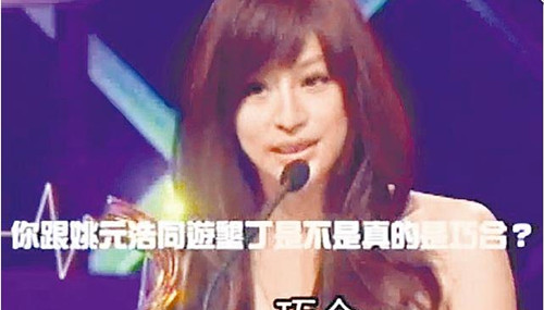 王心凌去年在“娱乐大赏”坚称和姚元浩在垦丁玩是“巧合”。图片来源:台湾《苹果日报》