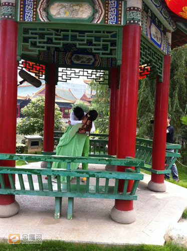 欧弟大胆搂绿衣美女入怀 众目睽睽下主动献吻(图)(5)