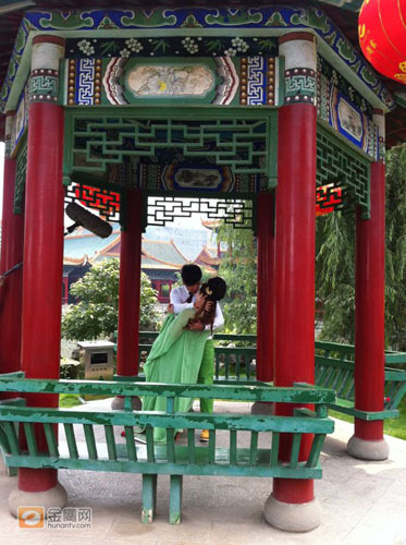 欧弟大胆搂绿衣美女入怀 众目睽睽下主动献吻(图)(6)