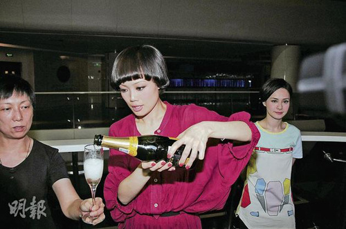 容祖儿日前在上海庆祝32岁生日,左手仍戴着何韵诗的情侣手链。图片来源:香港“明报”