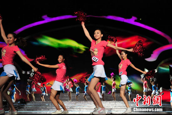 佳丽环节展示,图为杨安琪(中)。中新网记者 金硕 摄