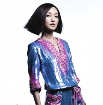 周迅写真以羽毛护肩 黑色蕾丝裙冷艳性感(图)(3)