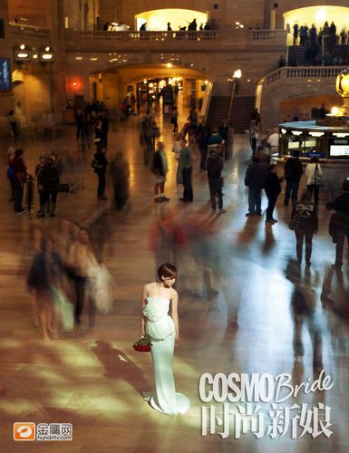 王珞丹化身美国新娘 披拖地婚纱美艳站街头(图)(3)