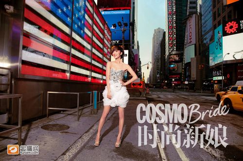 王珞丹化身美国新娘 披拖地婚纱美艳站街头(图)(4)