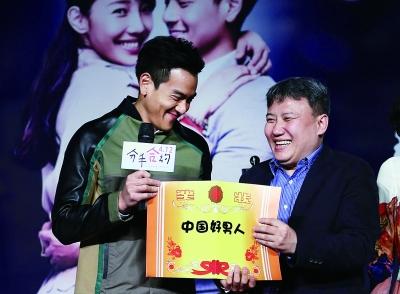 被评为“中国好男人”的彭于晏(左)笑得很开心