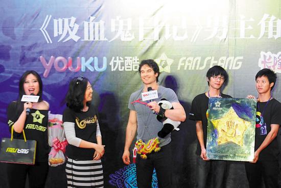 热门美剧《吸血鬼日记》的男主角之一伊恩·萨默海尔德27日来到广州长隆欢乐世界,参加由优酷携手粉丝堂主办的中国粉丝见面会,与广州粉丝进行亲密互动。当天适逢雅安地震哀悼日,伊恩向粉丝呼吁,“希望大家能联手传播正能量,尽自己的一份力帮助雅安的受灾群众。”