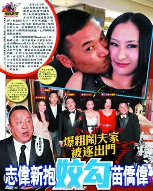 有传曾志伟已将儿子曾国猷和媳妇逐出家门,不过苗侨伟则回应称只是礼貌一吻,没有其他意义。