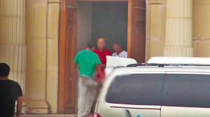李小璐、宋丹丹、葛优相继走出楼门,离开片场。李小璐甩着胳膊、扭着腰身,其助理还热情地跟现场工作人员挥手告别。一头短发的宋丹丹还是风风火火的样子,快步上车离开。倒是葛优葛大爷身着红T恤,慢悠悠、不急不忙,蹭车离开。原来,接葛大爷的车没有开到楼下,葛优先是乘坐房车来到了庄园外,之后又下车转到越野车上离开。