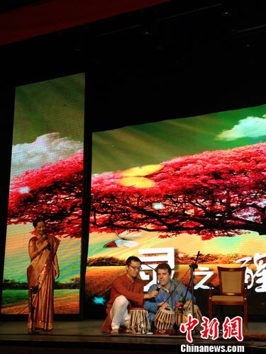 中新网北京6月9日电(罗攀) “印乐•心灵音乐盛典”9日晚在京上演,印度Nirmal Sangeet Sarita乐团的音乐大师在奉上一场身、心、灵的音乐体验外,还与观众亲密互动,现场数次出现大合唱的震撼场面。