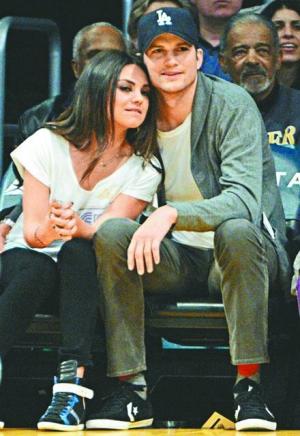 艾什顿·库彻(右)与米拉·库妮丝恋情稳定,有传已论及婚嫁。