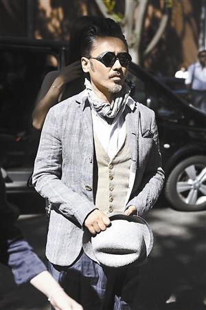 标志性的胡须,高级灰休闲西装配麻布肥腿裤,考究的层次、细节感,黑超、口袋巾的精致点缀——内秀低调依然,可这般混搭潮男大叔范儿,却再难觅《黎明之前》里那个深藏功与名的卧底刘新杰的气息。