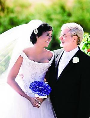当地时间6月22日,69岁的《星球大战》著名导演乔治·卢卡斯与44岁女友、美国电影制作发行公司梦工厂动画部主席麦勒迪·霍布森终于完婚(如图),婚礼在卢卡斯公司所在地加州洛杉矶天行者山庄举办,少量圈内名人出席了婚礼并给予这对新人祝福。