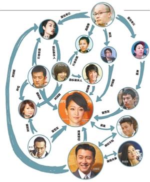 如今,周迅与谢霆锋“牵手”,网友们发现,他们与前任、前任的前任、前任的现任之间已经形成一张巨大的关系网:张柏芝前夫是谢霆锋,谢霆锋前女友是王菲,王菲老公是李亚鹏,李亚鹏前女友叫瞿颖,瞿颖现男友是张亚东,朴树有个前女友叫周迅,周迅有个前男友叫李亚鹏,王菲前夫是窦唯,窦唯有个堂弟叫窦鹏,窦鹏有个前女友叫周迅,窦鹏堂姐是窦颖,窦颖前夫是张亚东,张亚东现女友是瞿颖,瞿颖前男友叫李亚鹏。有不少网友笑称:娱乐圈真是一个圈,这条爱情食物链简直就是吉祥的一家。