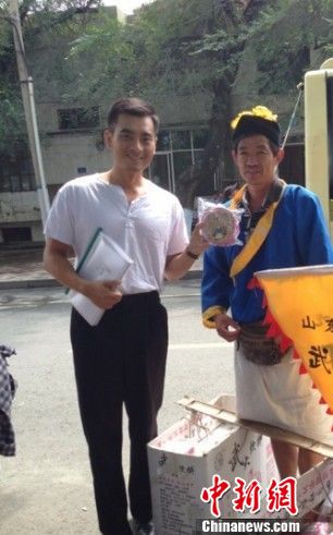 陈龙外地拍戏不舍妻儿 路边吃烧饼瞪眼卖萌(图)