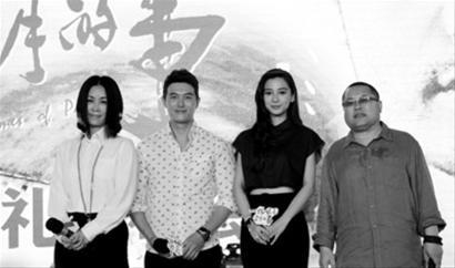 高群书(右一)携《一场风花雪月的事》主创An-gelababy、在熙和电影歌曲演唱者那英亮相。