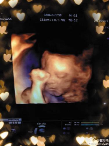 前天,怀孕8个月的霍思燕通过微博晒腹中胎儿B超照,并幸福的调侃,称:“不愧是10后,在肚子里就会卖萌了。”照片中显示,小家伙已经在用手揉眼睛了,看上去相当可爱。在随后晒出的一张自拍照片中,霍思燕也学小家伙举着右手,遮挡眼睛卖萌。