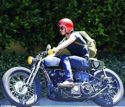 贝克汉姆骑复古摩托出门 造型拉风秀硬汉风范(图)