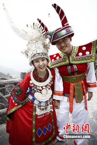 中新网8月22日电 今日,刚刚曝出婚讯的何洁与赫子铭曝光了此前两人在外出游玩时拍摄的一组图片。在图片中,何洁与赫子铭身着民族服饰,十分甜蜜。